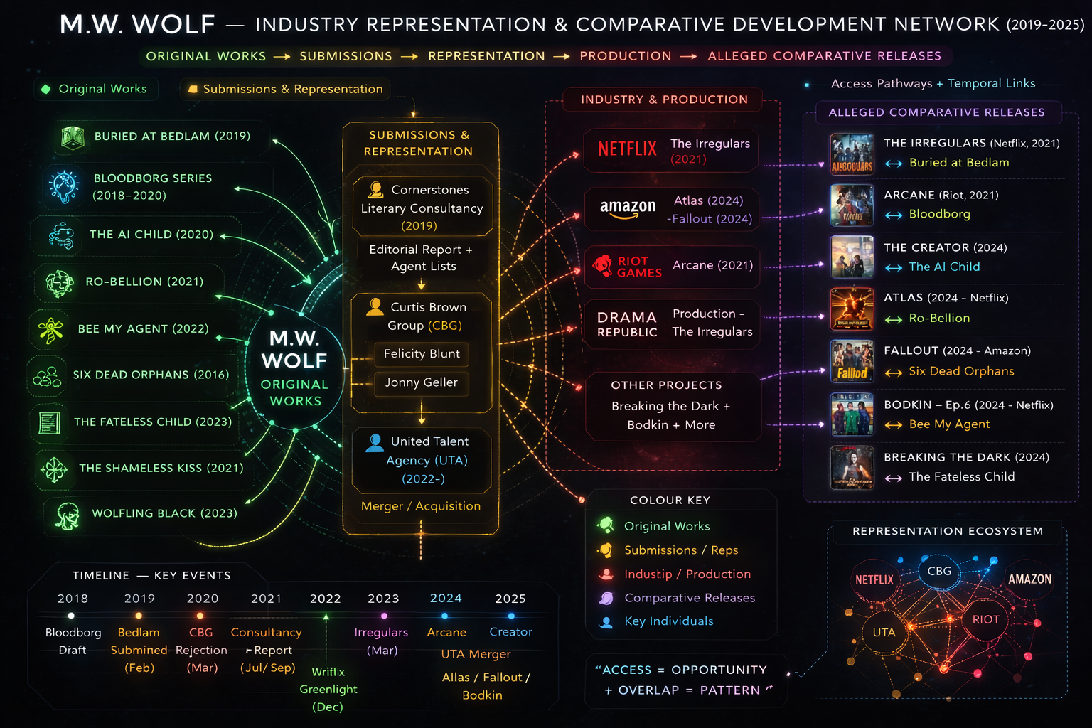 Sub-Case L- Stranger Things season 5 on Netflix- 2025 (By January 2026, third-party reporting confirms that Stranger Things Season 5 introduced a storyline involving the systematic exploitation of pregnant women for blood-based experimentation designed to engineer superpowered children. These narrative elements materially align with themes and structures articulated by Plaintiff in Bloodborg: The Harvest years earlier, reinforcing a pattern of narrative convergence across Netflix-distributed properties.) Seems as the M.W. Wolf works are all linked, this also features in The Fateless Child.